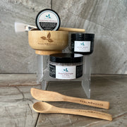 Start your self-care journey with our 3PM Mud Masque, specially crafted to purify your skin. Apply the gentle and detoxifying clay mask, and while it works its magic, let the soothing melodies from our curated Spotify playlist, "Teal N Bronze," fill the air, creating a harmonious atmosphere as you dance along with your mask.